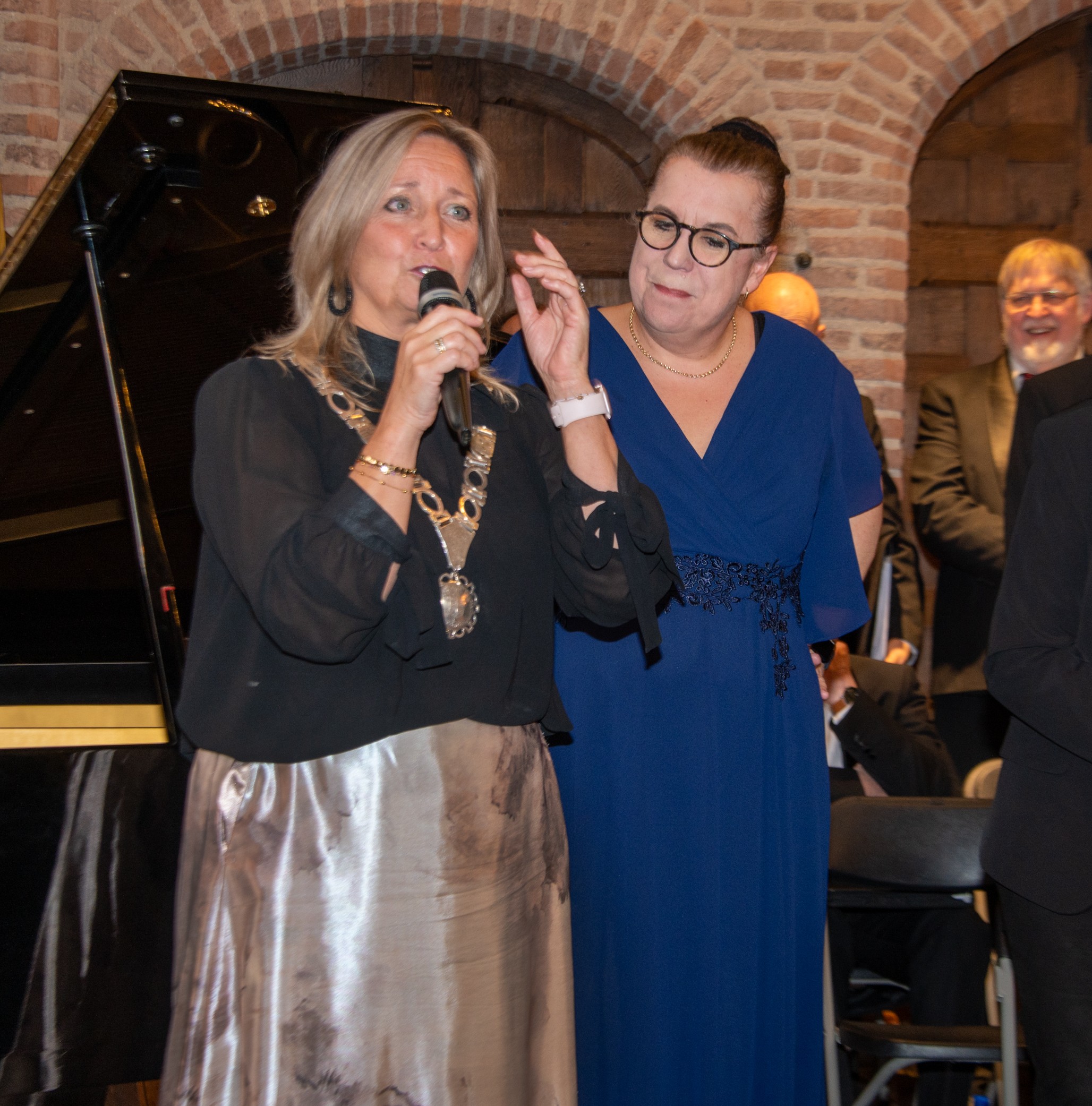 De jubilarissen Annie Hamers, 12,5 jaar lid en Anja den Brok, 25 jaar lid werden samen met Carl van Kuijck, 25 jaar onze dirigent flink in het zonnetje gezet en verrast met fraaie cadeau’s.